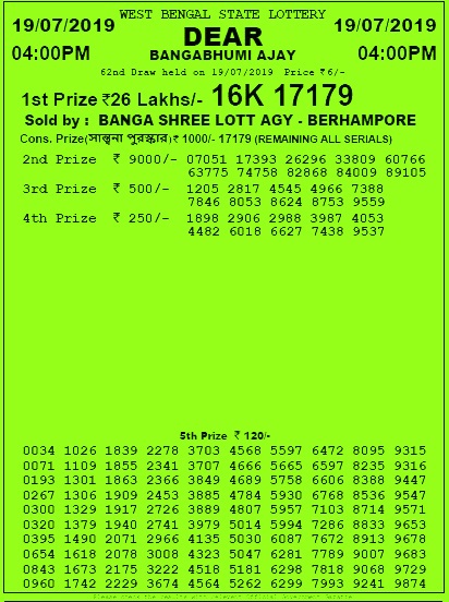 Bangabhumi Ajay Friday Weekly Lottery Result Bangabhumi Ajay Friday Weekly Lottery Result / The results of the dear bangabhumi ajay lottery will be announced on march 18,i.e., friday at 04:00 pm.