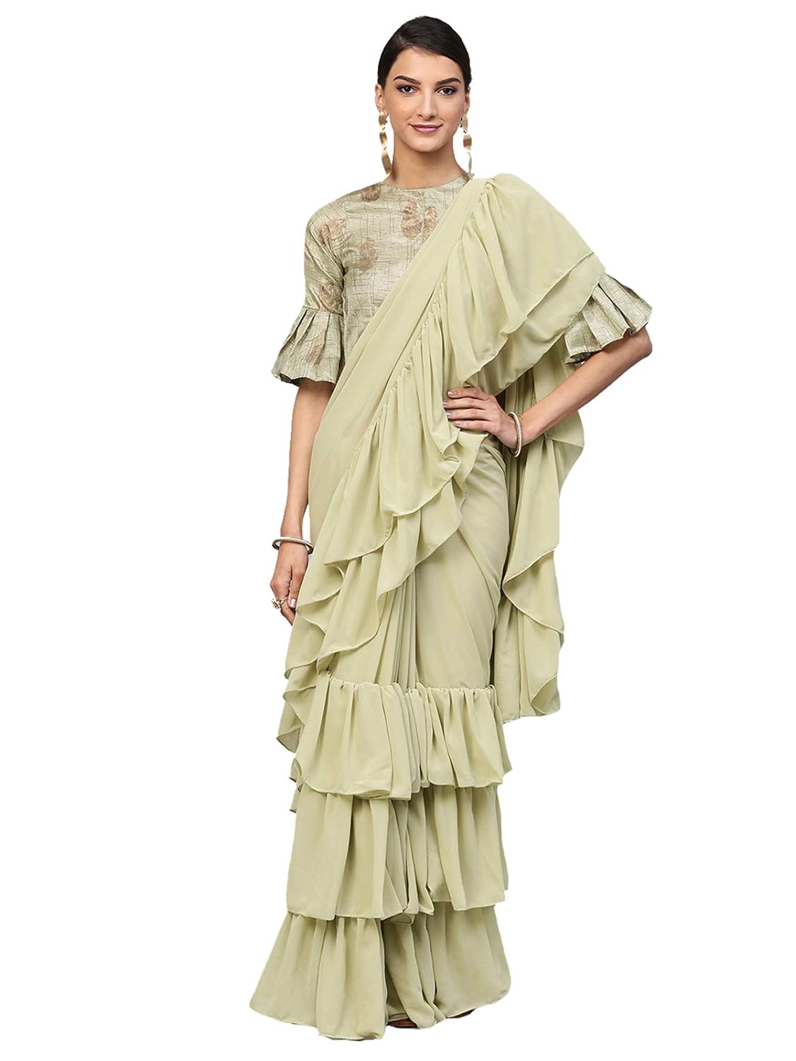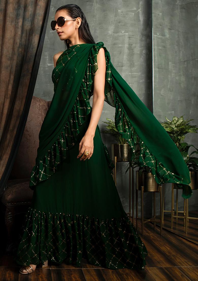 Dark Green Ruffle Saree Dark Green Ruffle Saree / Ruffle saree are one of the most recognisable pieces of women's clothing across the world, and it never goes out of fashion.