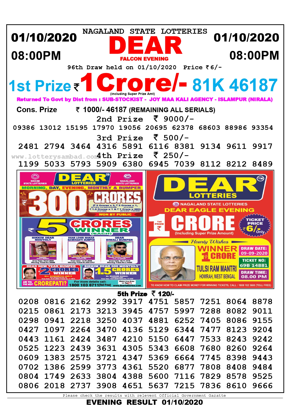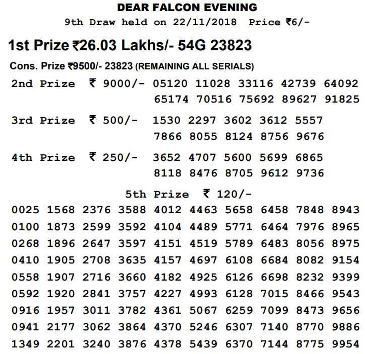 Dear Falcon Evening Result Dear Falcon Evening Result / Find the today's result menu and click on it.