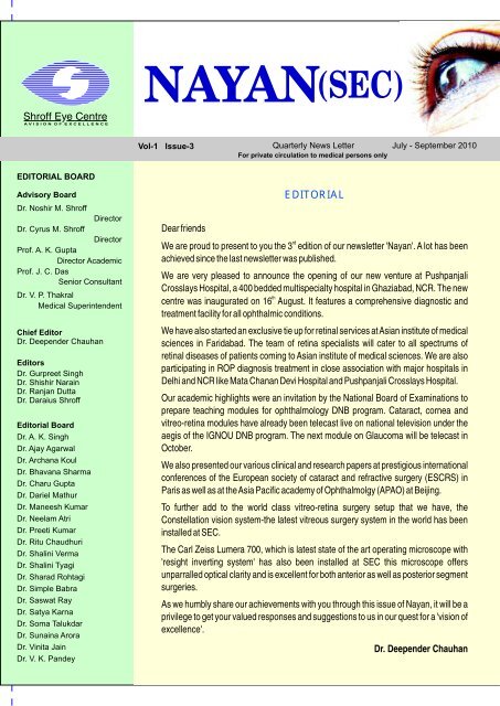 Vol 1 Issue 3 Shroff Eye Centre - Human eyes are complex sense organs.