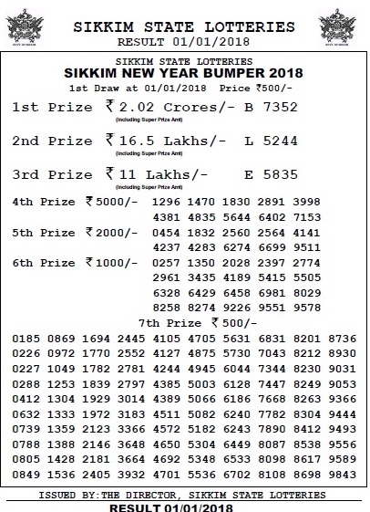 Sikkim State Lottery Sikkim Lotteries Result Sikkim Today Result State Lottery Lottery Lottery Results - All the private lotteries are banned and now only state lottery is legal in the state.